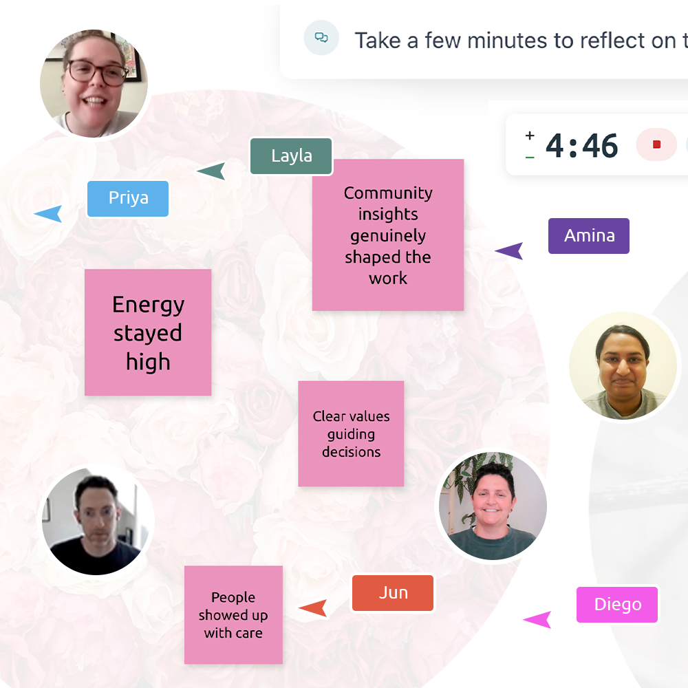 Run the room with confidence using best-in-class facilitation tools. Keep sessions focused, fluid, and intentional - without pulling you out of the moment.