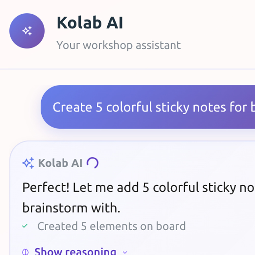 Let Kolab AI carry the cognitive load - planning sessions, synthesizing discussion, and identifying next steps.